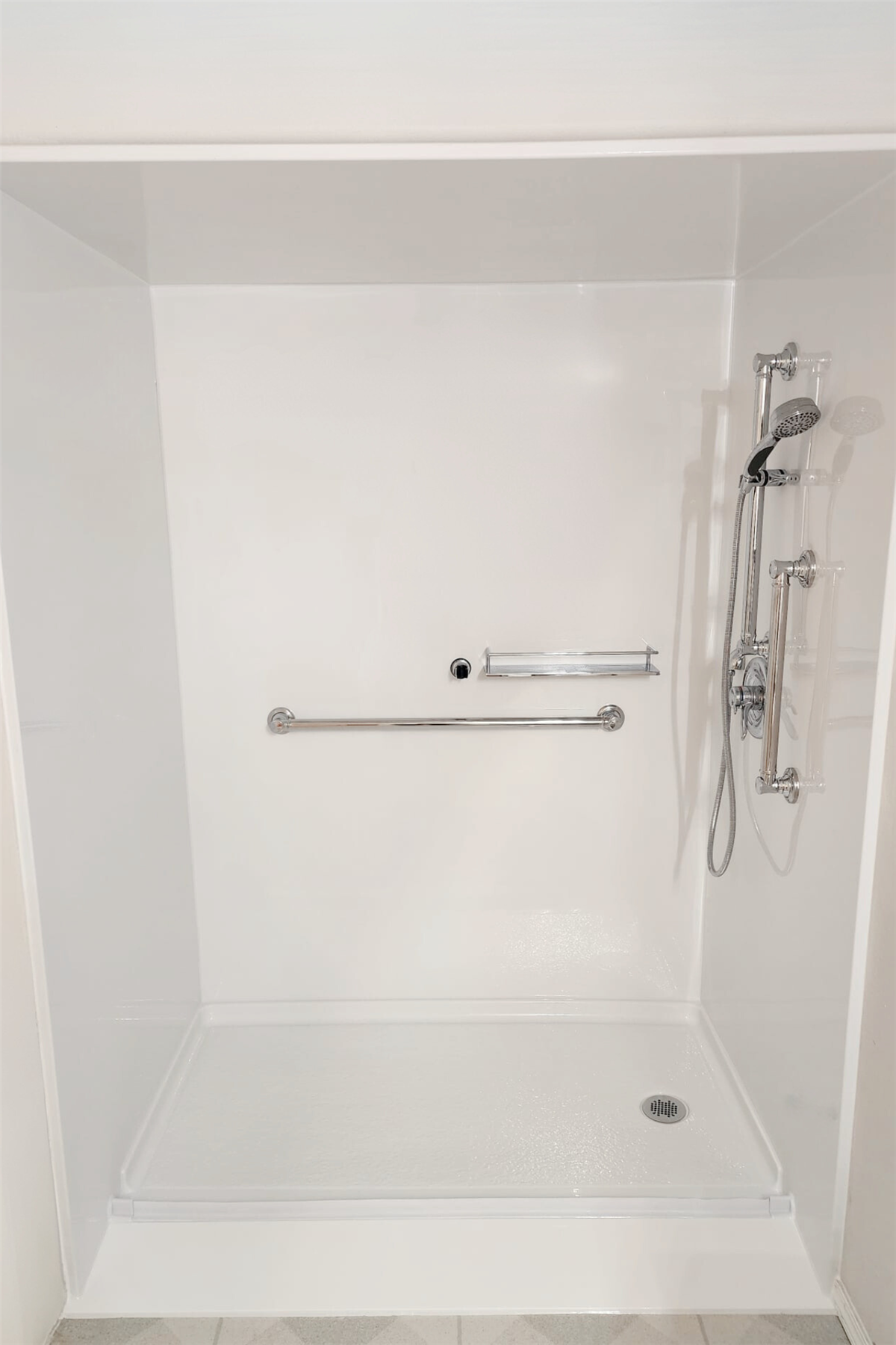 In addition to the safety of a barrier-free base, a wheelchair-accessible shower from us comes with: